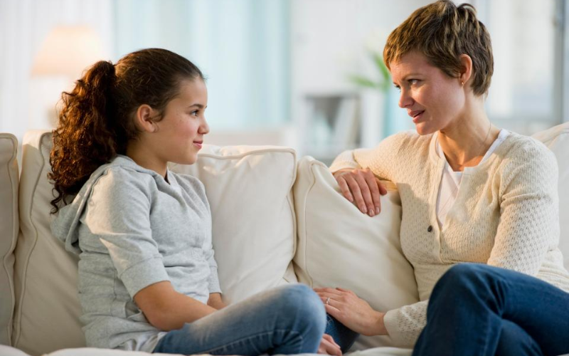 Giao tiếp cởi mở là điều cần thiết để hiểu được tâm trạng của con bạn. Ví dụ, hãy nói với con: “Con có vẻ buồn. Có điều gì muốn nói với mẹ không? Có điều gì làm con phiền lòng?” Sau đó, hãy để trẻ kể chuyện cho bạn nghe. Nếu bé từ chối chia sẻ, hãy thử lại vào ngày hôm sau.